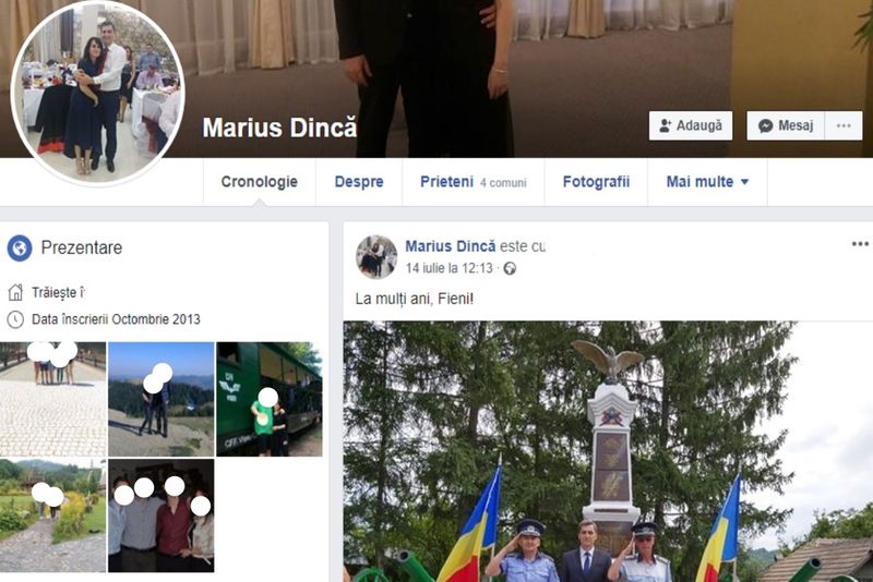 Foto- pagină facebook comisar Marius Dincă (31 iulie 2019)
