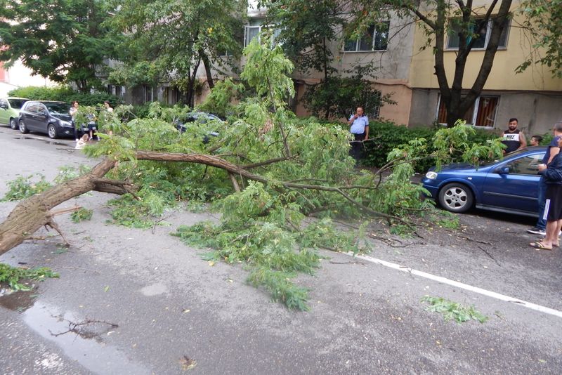 Semnale de alarmă. Copaci doborâți de furtună, la Târgoviște, au provocat pagube materiale
