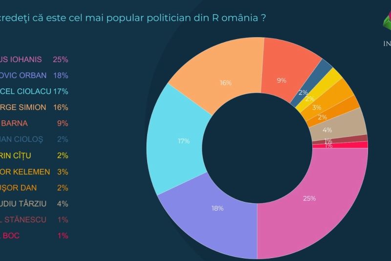 Același clasament este valabil și ca răspuns la întrebarea "care credeți că este cel mai popular politician din România" - Klaus Iohannis (25%), Ludovic Orban (18%) și Marcel Ciolacu (17%). Interesante sunt și ultimele locuri din clasament. Claudiu Târziu a obținut doar 4% din voturi, în condițiile în care George Simion are 16%, iar Paul Stănescu și Emil Boc au însumat, fiecare, abia câte 1%. Nicușor Dan a obținut, la aceeași întrebare, doar 2% din voturi.