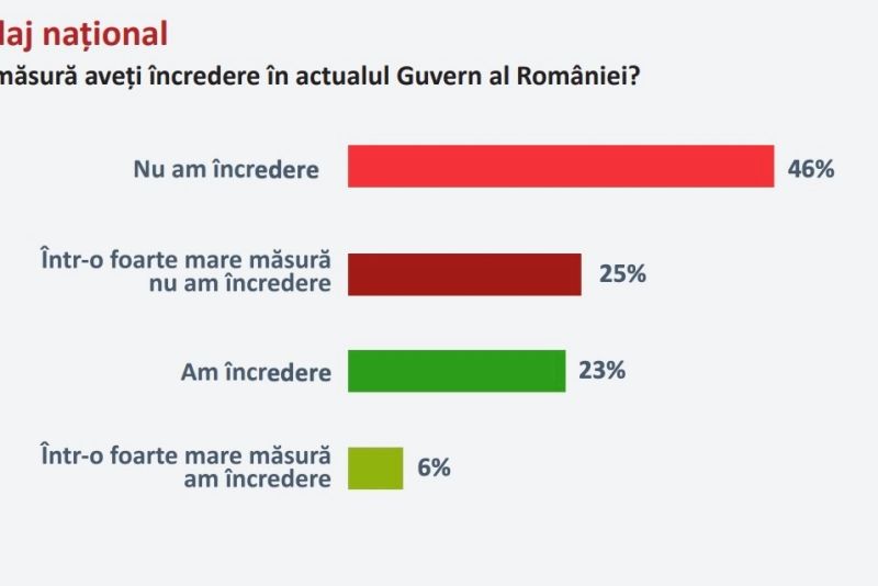 Potrivit cercetării, la întrebarea În ce măsură aveți încredere în actualul Guvern al României?, într-o proporție covârșitoare românii au răspuns că nu au încredere. Mai exact, 46% dintre respondenți.
