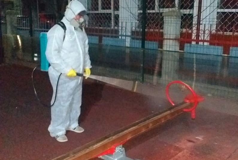 Acțiune dezinfecție Târgoviște (sursa foto-facebook, Daniel Cristian Stan)