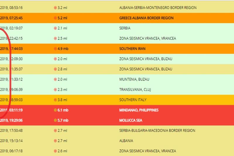 5.În ziua de 31 Octombrie 2019 la ora 22:42:15 (ora locală a României) s-a produs în ZONA SEISMICA VRANCEA, VRANCEA un cutremur cu magnitudinea ml 2.5, la adâncimea de 98km.