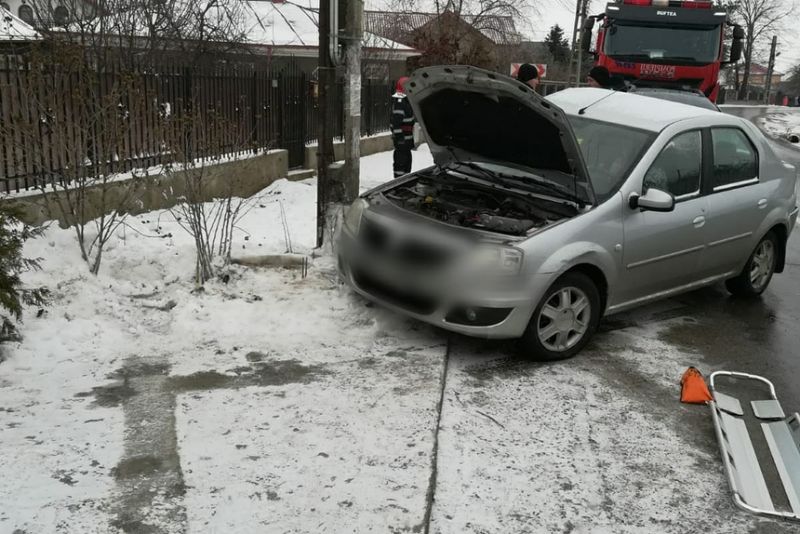 Un autoturism s-a oprit din derapaj într-un stâlp de electricitate. Două persoane accidentate
