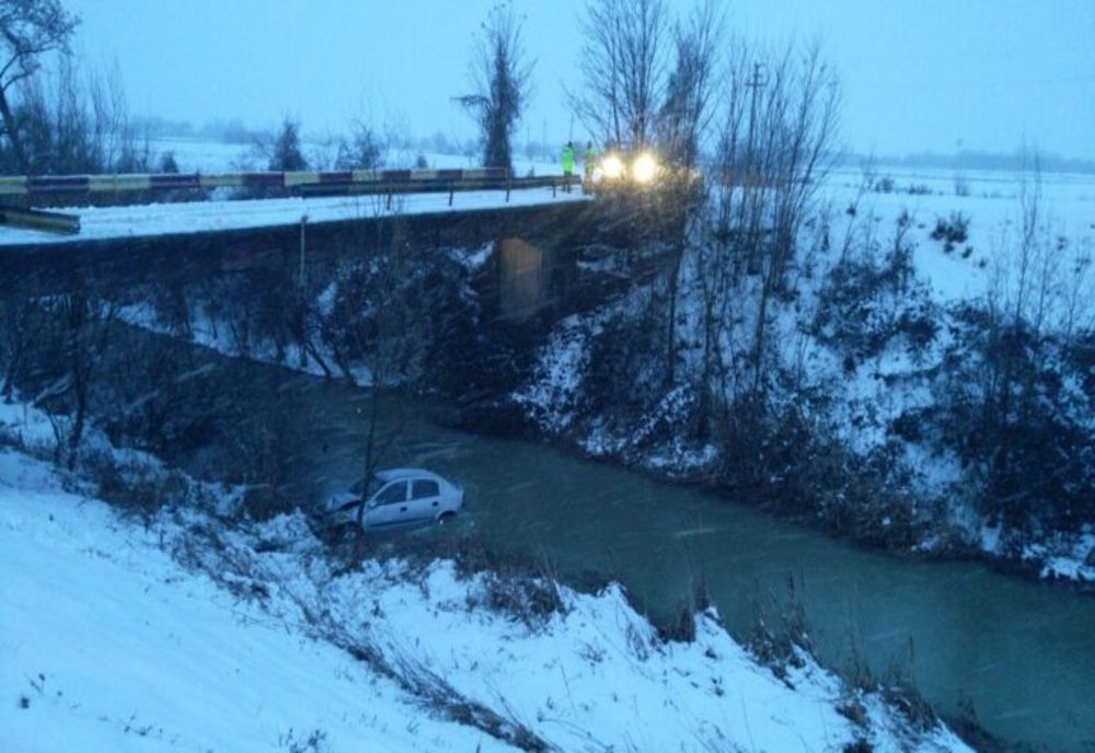 La un pas de moarte! Un șofer a plonjat, sâmbătă după-amiază, în râul Dâmbovița, pe raza localității Brezoaele.