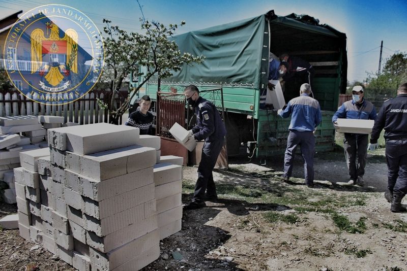 Jandarmii dâmbovițeni au strâns bani și au cumpărat materiale de construcție, pentru băiatul ce ridică singur o casă