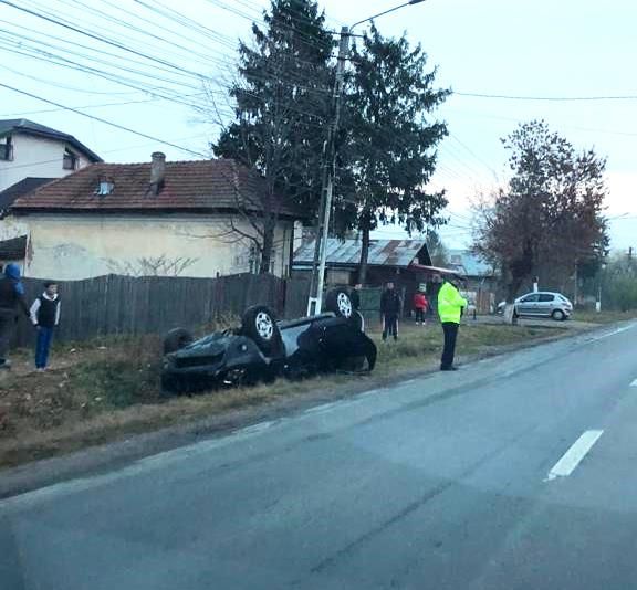 Incidentul a avut loc pe DN 71 Târgoviște - București, în dreptul orașului Răcari.La un moment dat, conducătorul auto a pierdut controlul asupra direcției de deplasare, iar bolidul s-a răsturnat în afara părții carosabile, în zona oraşului Răcari.Din fericire, cei doi ocupanți au scăpat teferi din acest accident. În schimb, autoturismul a fost grav avariat.[caption id="" align="alignnone" width="678"]
