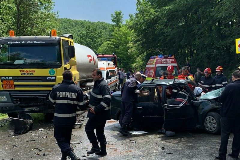 VIDEO Impact violent între o cisternă și o mașină. Trei persoane rănite