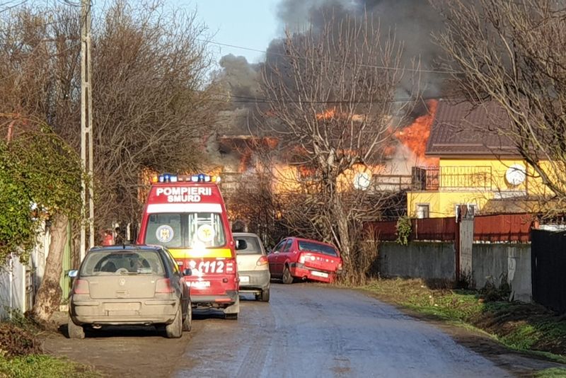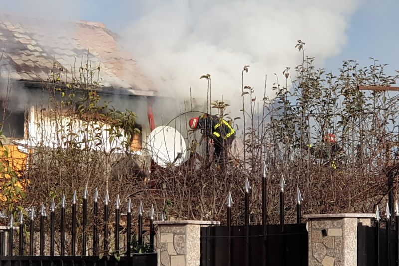 Pompierii se lupă pentru ca focul să nu cuprindă și alte locuințe