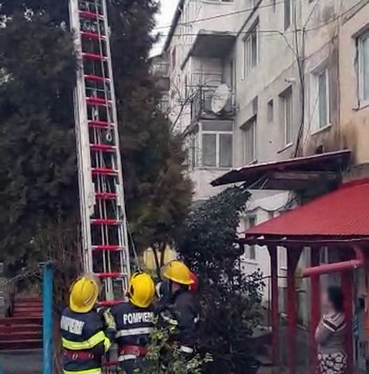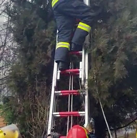 "Intervenție în forță" a pompierilor dâmbovițeni,în această dimineață, la Moreni. Reprezentanții ISU Dâmbovița au fost solicitați să intervină pentru a da jos dintr-un brad,înalt de 7-8 m, o pisică ce nu mai putea să coboare din copac.