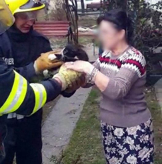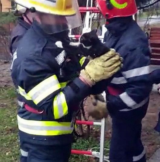 Salvatorii au acționat cu o scară culisabilă, coborând felina în condiții de siguranță. Întrega operațiune nu a durat decât aproximativ 3 minute, animalul fiind speriat, iar în momentul în care pompierul ce a salvat-o a adus-o al sol, practic s-a agățat de acesta nemaivoind să coboare pe pământ. proprietara animalului a urmărit cu sufletul la gură întrega operațiune de salvare, la final mulțumindu-le pompierilor.