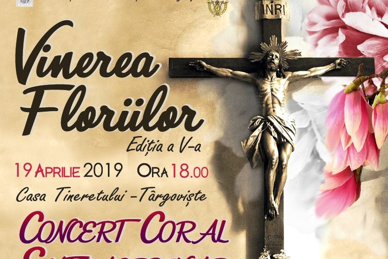 În calendarul creştin ortodox, Sărbătoarea Sfintelor Paşti ocupă cel mai important loc, tradiţiile satului alcătuindu-se în jurul acesteia.Consiliul Județean Dâmbovița, prin Centrul Județean de Cultură, alături de Arhiepiscopia Târgoviștei, va organiza o zi dedicată semnificațiilor acestei sfinte sărbători. Astfel, în data de 19 aprilie 2019, începând cu ora 18.00, la Casa Tineretului, vă invită să participați la evenimentul ”Vinerea Floriilor”, ediția a V-a, Floriile fiind sărbătoarea care ne aminteşte de intrarea triumfală a Domnului în Ierusalim, înainte de Patimi.Într-un regal muzical de excepție, în premieră, vor urca pe scenă, în cadrul unui concert coral extraordinar, două corale de prestigiu.Corala bărbătească „Armonia”, din Constanța, reprezintă, fără îndoială, un reper important în peisajul coral românesc și nu numai. Amintim faptul că, de-a lungul timpului, a obținut premii importante la concursuri naționale și internaționale, cele mai valoroase premii din palmares fiind medaliile de aur - secțiunea folclor și muzica religiilor - la Olimpiada Corală Mondială.Corala Catedralei Mitropolitane Târgoviște, este un reper muzical-artistic și bisericesc pentru municipiul Târgoviște, dar și pentru județul Dâmbovița, Corala funcționând cu binecuvântarea Înaltpreasfințitului Mitropolit Nifon şi este dirijată de Mihail Vlădăreanu.Așadar, înaintea Sfintelor Sărbători de Paște vă învităm, alături de noi, la un moment de reflexie interioară și bucurie duhovnicească, pe acordurile unor lucrări din literatura muzicală românească de mare valoare artistică.