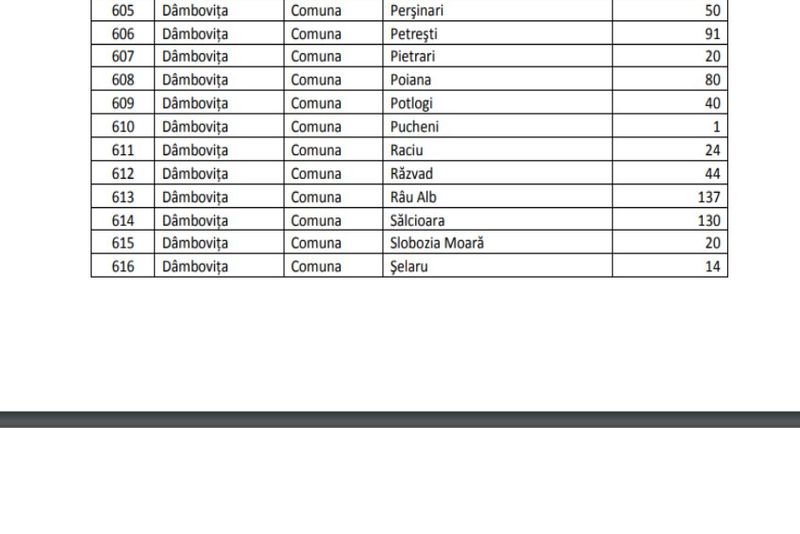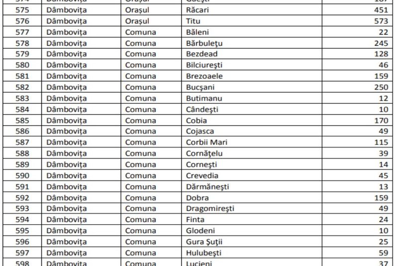 Ministerul Lucrărilor Publice,Dezvoltării și Administrației a publicat, pe pagina de facebook, lista cu localitățile și sumele alocate, din fondul de rezervă al Guvernului, pentru cele, până la urmă,1690 de localități ce aveau probleme de fucnționare. Suma totală este de 477,36 milioane de lei.În județul Dâmbovița, au primit ajutor doar orașele cu conducere liberală (Titu, Găești,Răcari), în total fiind vorba de 50 de localități (dintr-un total de 89). Suma totală,alocată pentru ajutor, județului Dâmbovița, fiind de 5,159 milioane de lei. Cea mai mare sumă a mers către orașul Titu 573.000 de lei. Vezi lista cu localitățile dâmbovițene ce au primit bani.