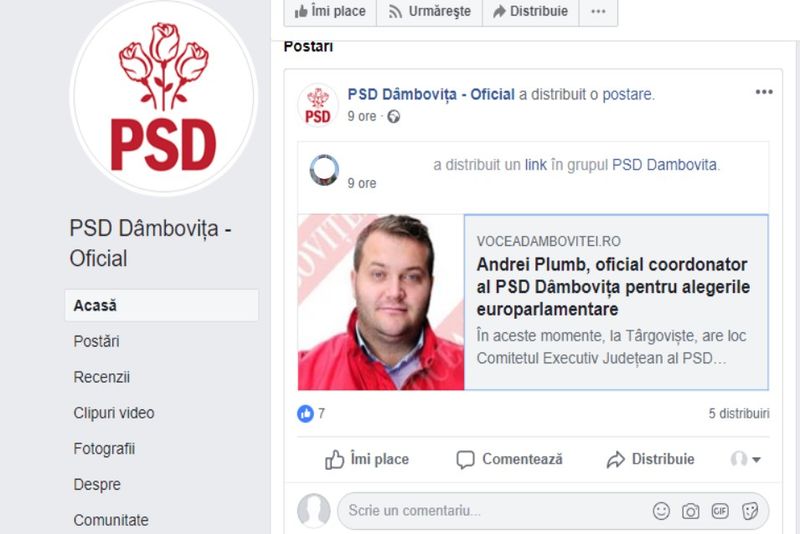Ceea ce anticipa toată lumea a fost anunțat oficial. Pe pagina de facebook, denumită PSD Dâmbovița Oficial (denumire dată după ce președinția organizației Dâmbovița a fost preluată de Rovana Plumb, ca urmare a excluderii din partid a fostului șef al organizației, senatorul Adrian Țuțuianu), a fost făcut anunțul, prin intermediul unei unui articol preluat din presa locală dâmbovițeană.