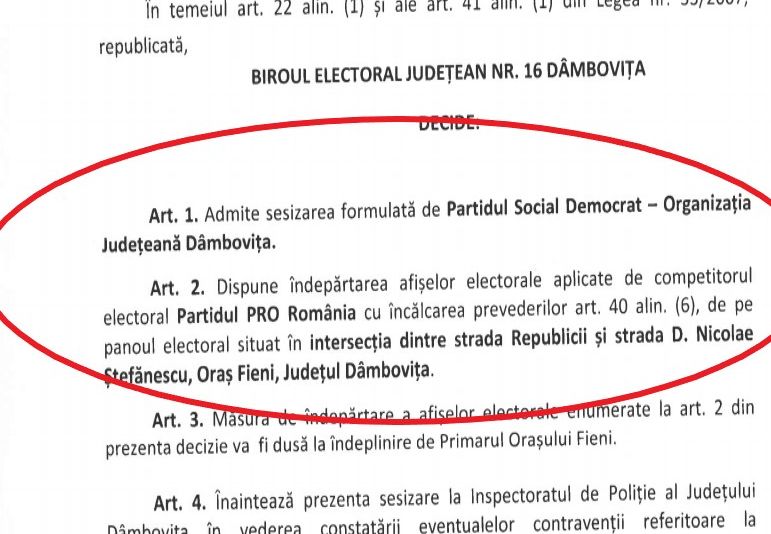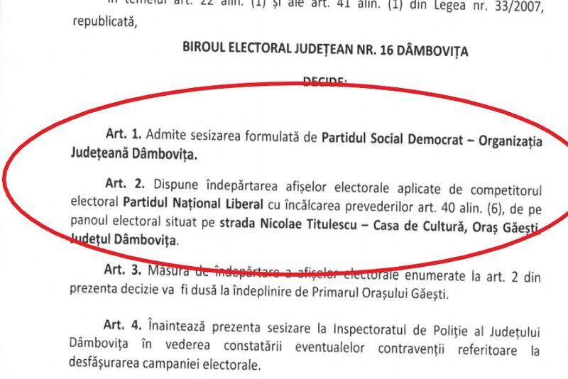 Deasemenea, o altă plângere a social democraților, privind distribuirea de materiale interzise, de către Primăria Găești, cu prilejul unei ședinte de consiliu local, a fost considerată neîntemeiată de către BEC Dâmbovița.