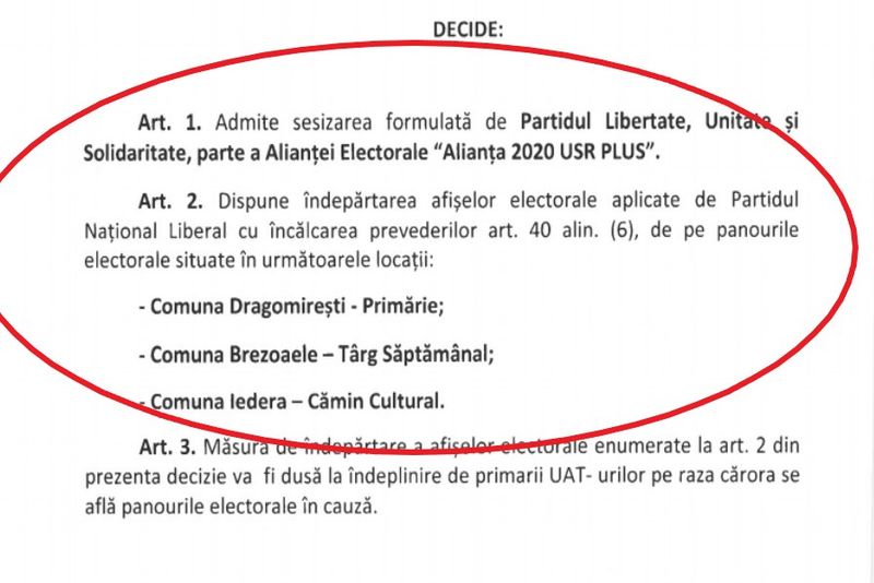 foto- respingere contestație PSD privind materiale campanie Găești