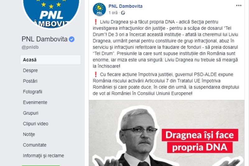 Liberalii dâmbovițeni spun că, prin aceste modificări, Liviu Dragnea își face practic propria DNA. Postarea a fost făcută pe pagina de facebook a partidului.