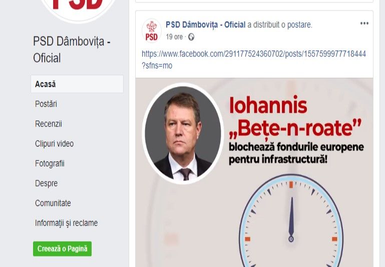 Edilul a reacționat imediat, pe facebook. Imediat după decizie a postat, pe pagina personală de facebook, exact același material de campanie promovat și pe pagina oficială a PSD Dâmbovița, material în care este atacat președintele Klaus Iohannis. (vezi foto captură)