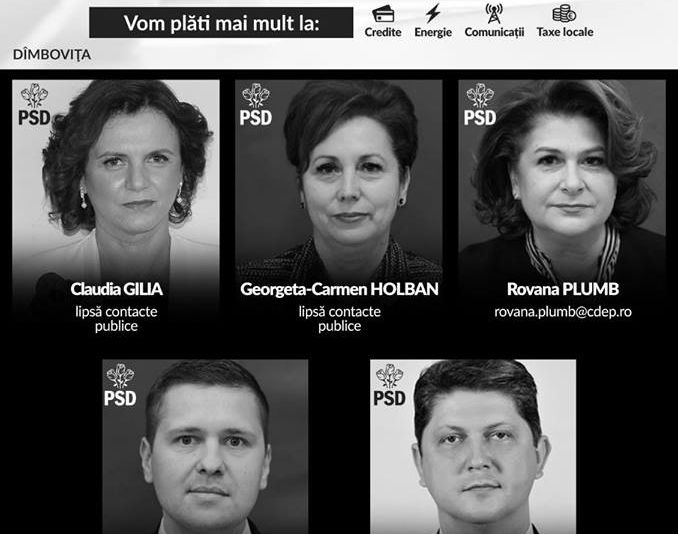 Anunțul este însoțit de un colaj foto în care apar parlamentarii PSD de Dâmbovița.
