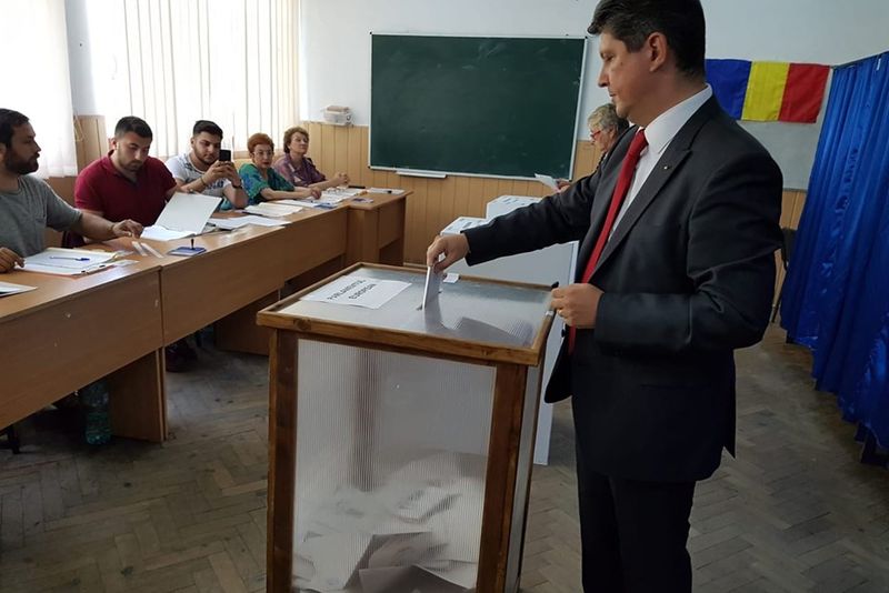 Foto- Titus Corlățean vot, 26 mai 2019 (sursa foto-facebook, PSD Titu)