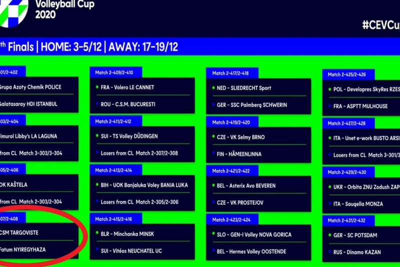Echipa de volei a Clubului Sportiv Municipal TÂRGOVIȘTE va înfrunta formația Fatum NYÍREGYHÁZA, din Ungaria, în 16-imile de finală ale CEV Cup.