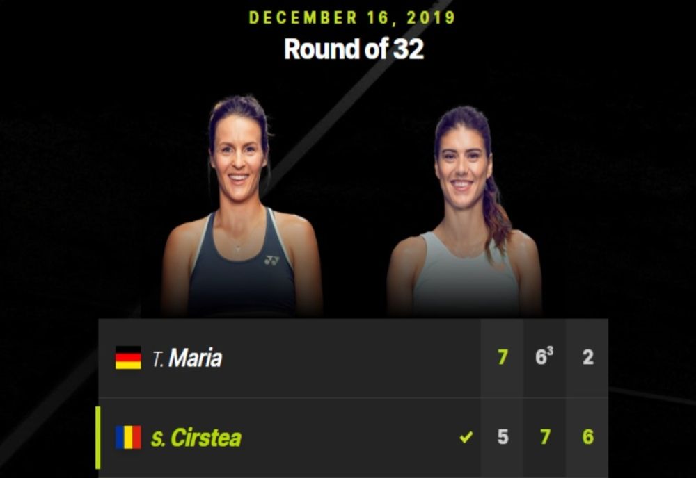 În turul al doilea (optimi de finală) sportiva din Târgoviște va întâlni învingătoarea din partida Alison van Uytvanck (Bel) și Sorribes Tormo (Spa), partidă ce va avea loc astăzi (17 decembrie 2019.