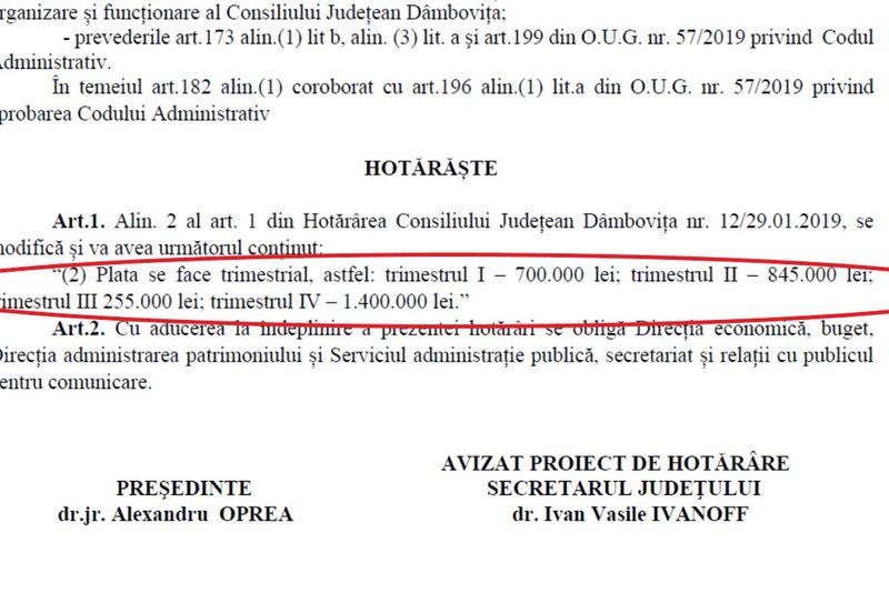 Foto- Hotărâre aprobare buget Chindia Târgoviște (ianuarie 2019), din partea CJ Dâmbovița