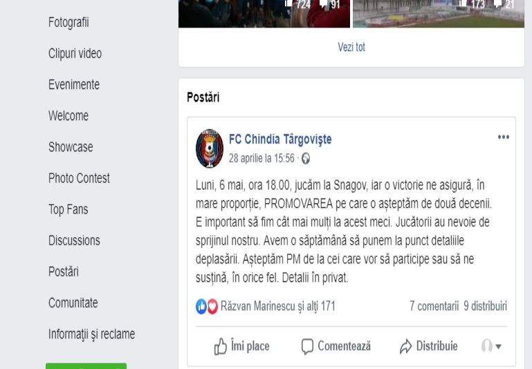 Foto articol- pagină facebook, FC Chindia Târgoviște (pagina suporterilor)