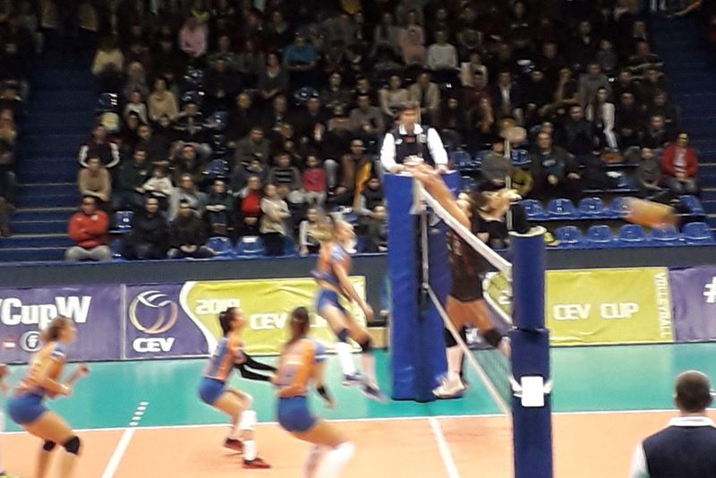 Echipa de volei feminin a CSM Târgoviște a fost depășită cu un sec 3-0, pe teren propriu, de echipa turcă Galatasaray Istanbul, în manșa tur a primei faze a competiției. Returul din 4 decembrie, de la Istanbul se anunță unul imposibil, pentru românce, din perspectiva șanselor la calificare în faza următoare.Suporterii gazdelor au desfășurat un imens steag tricolor, pe lungimea tribunei a doua, la debutul meciului.
