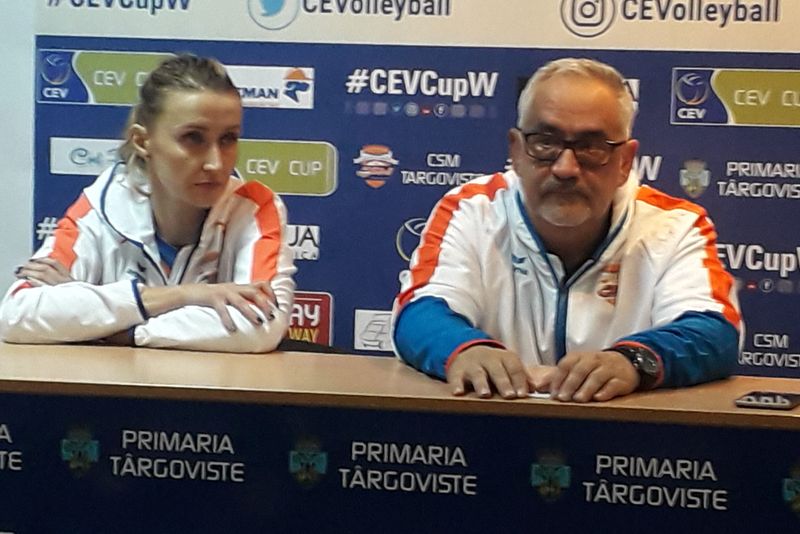 Valerjan Luka (foto, alături de Diana Calotă-căpitanul gazdelor), antrenorul sârb al gazdelor de la Târgoviște a și declarat, la conferința de presă (video), de după partidă: "Asta e, mergem mai departe. Nu abandonăm lupta."