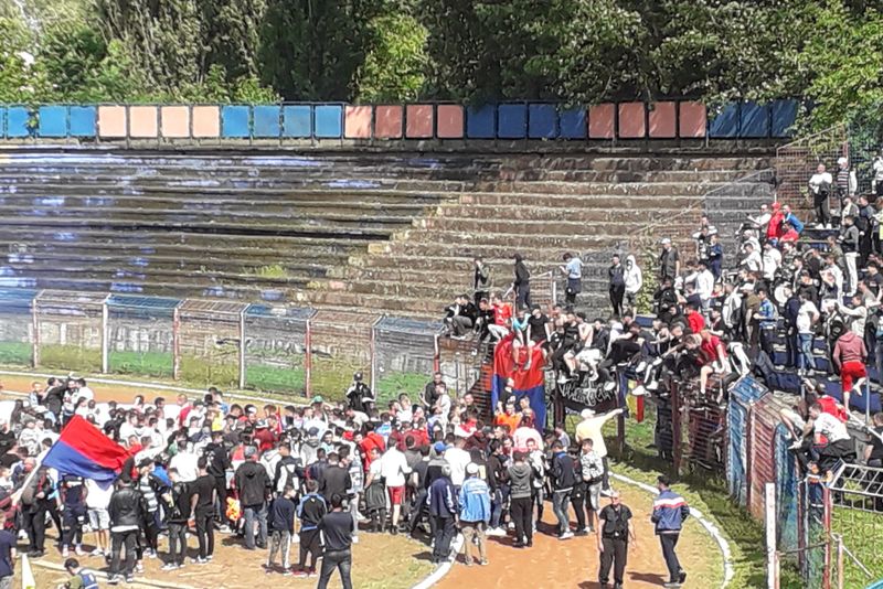Imediat după fluierul de final, sute de suporteri târgovișteni au forțat intrarea pe gazon și până la urmă au reușit, în ciuda împotrivirii inițiale a forțelor de ordine.