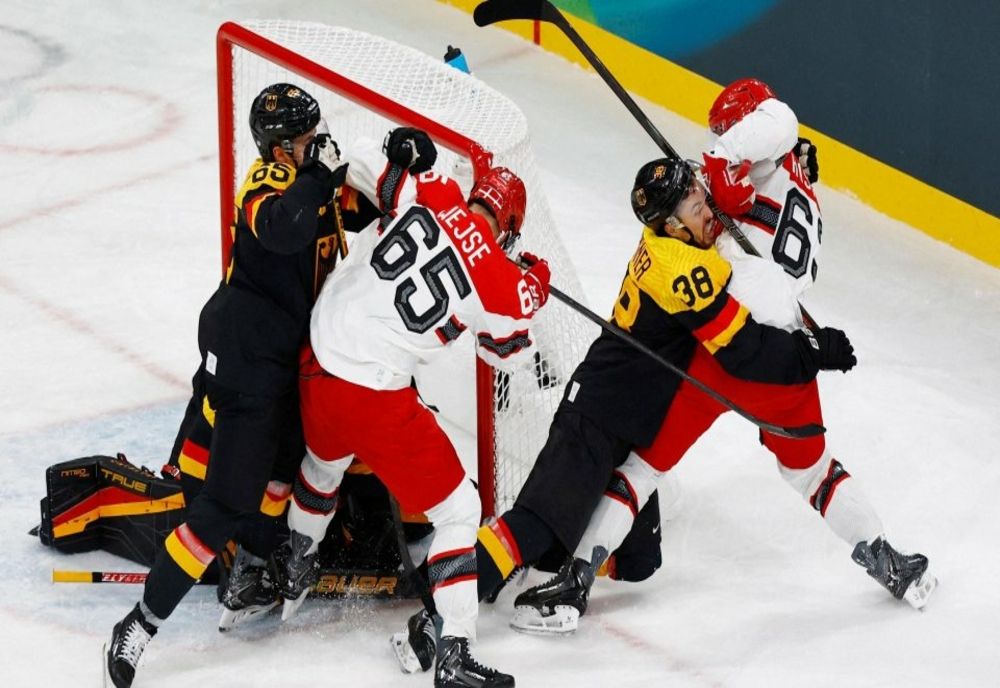 Germania a învins Danemarca cu 3-1, după un meci destul de echilibrat. Nemții au deschis scorul rapid prin Leon Draisaitl, dar danezii au reușit să egaleze prin Fisker Molgaard și astfel la odihnă s-a intrat la egalitate, scor 1-1. În repriza secundă a ieșit la rampă vedeta nemților, Tim Stützle, de la Ottawa Senators. El a punctat de două ori în partea secundă și astfel Germania a preluat inițiativa. Ultima repriză a fost albă, iar Germania a început turneul olimpic cu o victorie.