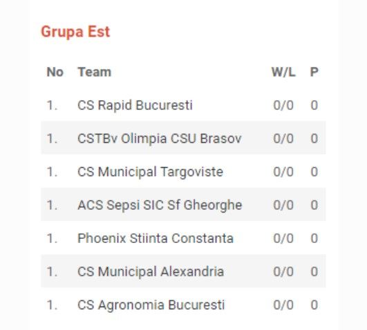 În prima etapă (grupa Est) se vor juca doar partidele ACS Sepsi SIC Sfântu Gheorghe și Olimpia CSU Brașov, locurile 1 și 4 în precedentul campionat, și CS Agronomia și CS Rapid.