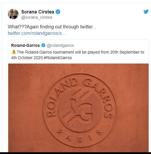 Turneul de tenis de la Roland Garros a fost amânat, din cauza pandemiei de coronavirus. A doua competiție de Mare Șlem a anului va avea loc în perioada 20 septembrie – 4 octombrie, dacă situația va reveni la normal în Franța. Târgovișteanca Sorana Cîrstea, dar și alte jucătoare și-au manifestat surprinderea față de această decizie.Scrie realitateasportivă.net