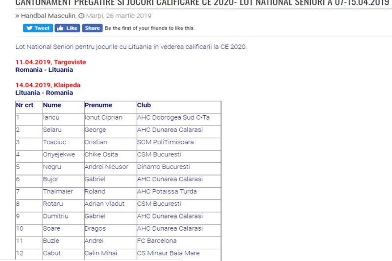 În același timp, tot FRH, a anunțat și că partida România-Lituania va avea loc la Târgoviște, în data de 11 aprilie. Lotul A însă va veni direct la Târgoviște, neefectuând un stagiu de pregătire aici, înaintea partidei.