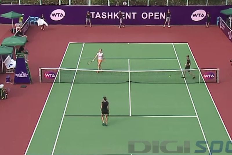 Sorana a început mai slab meciul contra lui Van Uytvanck și a pierdut primul set cu 2/6. În setul secund, Sorana a fost mai atentă, în special la serviciu, și a reușit să domine categoric disputa, adjudecându-și actul secund cu 6/4. La finalul setului doi belgianca având chiar o răbufnire nervoasă în care a vociferat la propriul staff și a lovit cu racheta de pământ.