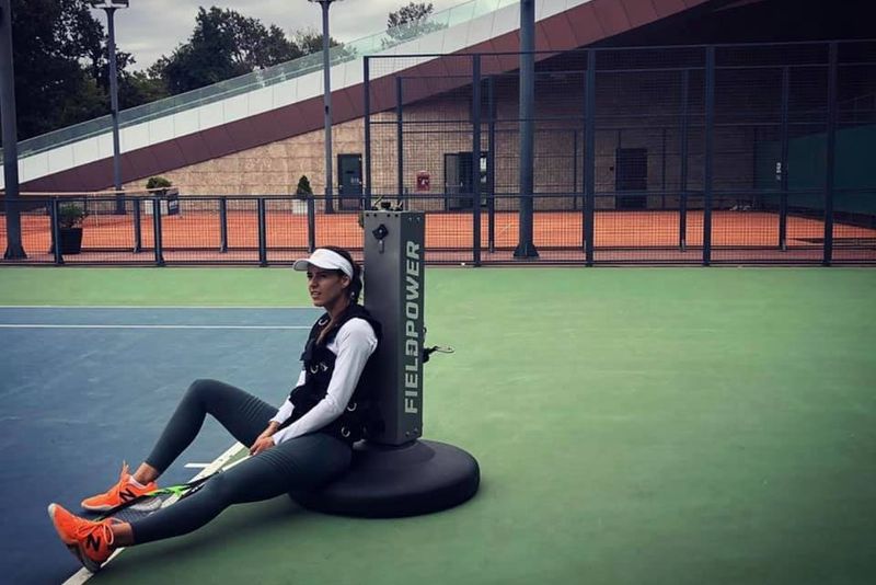A scris Sorana, pe facebook, însoțind postarea și de două fotografii care o înfățișează părând extenuată, după un antrenament,pe terenul de joc.