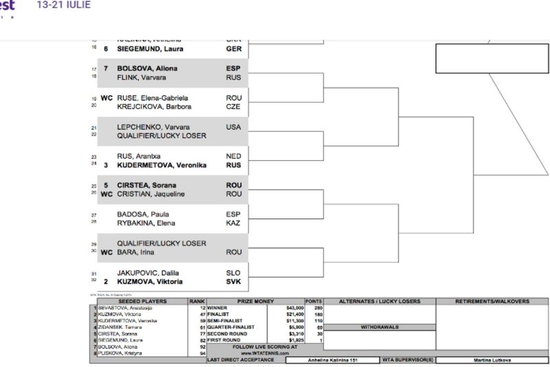 A fost stabilit tabloul de concurs al celei mai importante competiții de tenis ce are loc în România, turneul BRD Bucharest Open. Cu multe românce acceptate direct pe tabloul principal, competiția va avea un singur cap de serie din țara noastră, târgovișteanca Sorana Cîrstea.