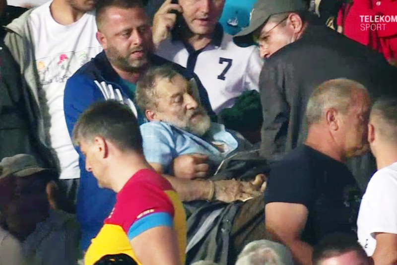 Spre finalul primei reprize, meciul a fost întrerupt câteva momente după ce unui suporter i s-a făcut rău în tribunele stadionului. Publicul prezent lângă el a remarcat momentul şi au strigat către echipajul ambulanţei să intervină.