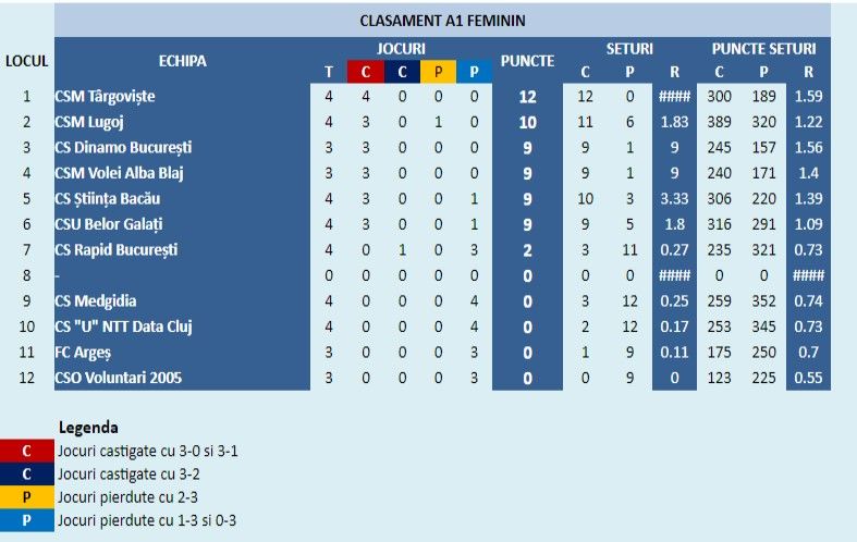 Foto- Clasament Divizia A1, volei feminin (sursa- frvolei.ro)