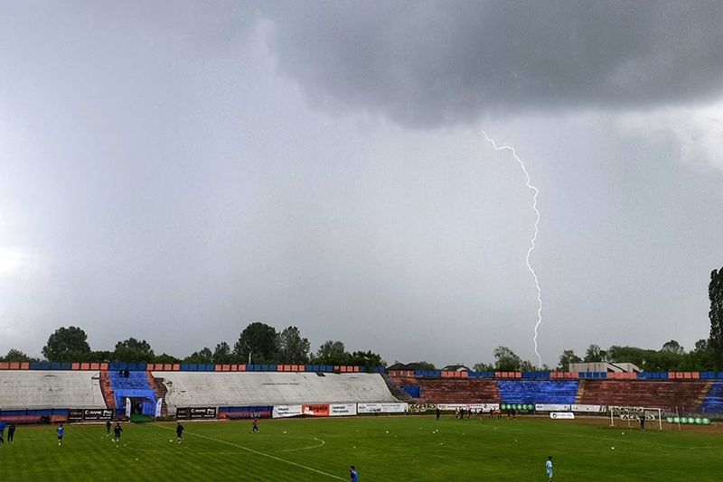 Un fulger a lovit în apropierea stadionului unde trebuie să înceapă meciul Chindia-Luceafărul Oradea